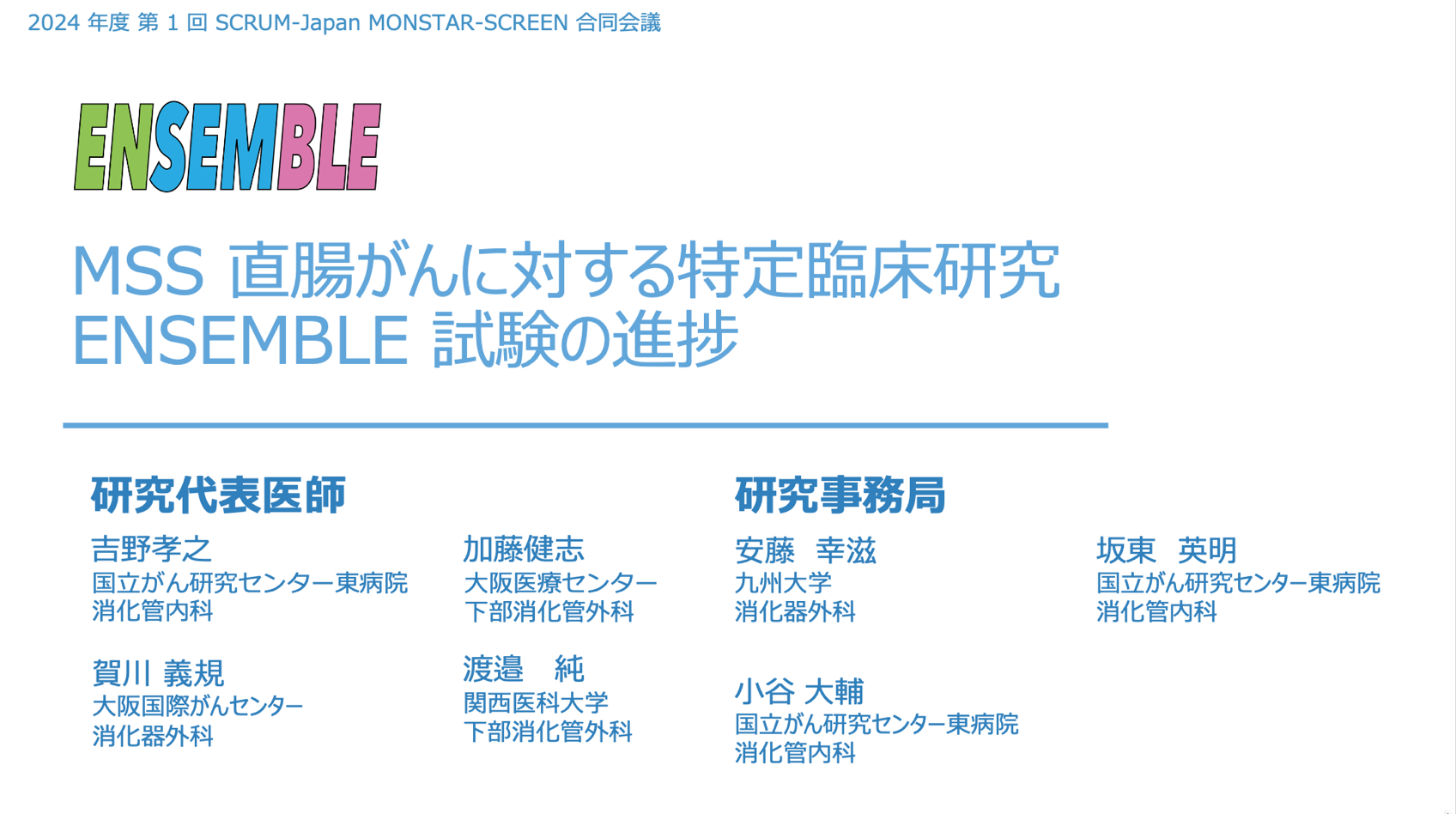 5/18(土)および5/19(日)開催のMONSTAR-SCREEN合同会議に参加し、ENSEMBLE試験について発表しました。